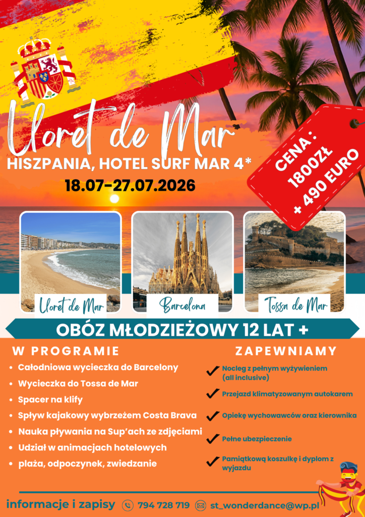 Spieszymy Wam z informacją, że kolejna edycja zagranicznego obozu młodzieżowego odbędzie się w gorącej Hiszpanii ☺️☺️